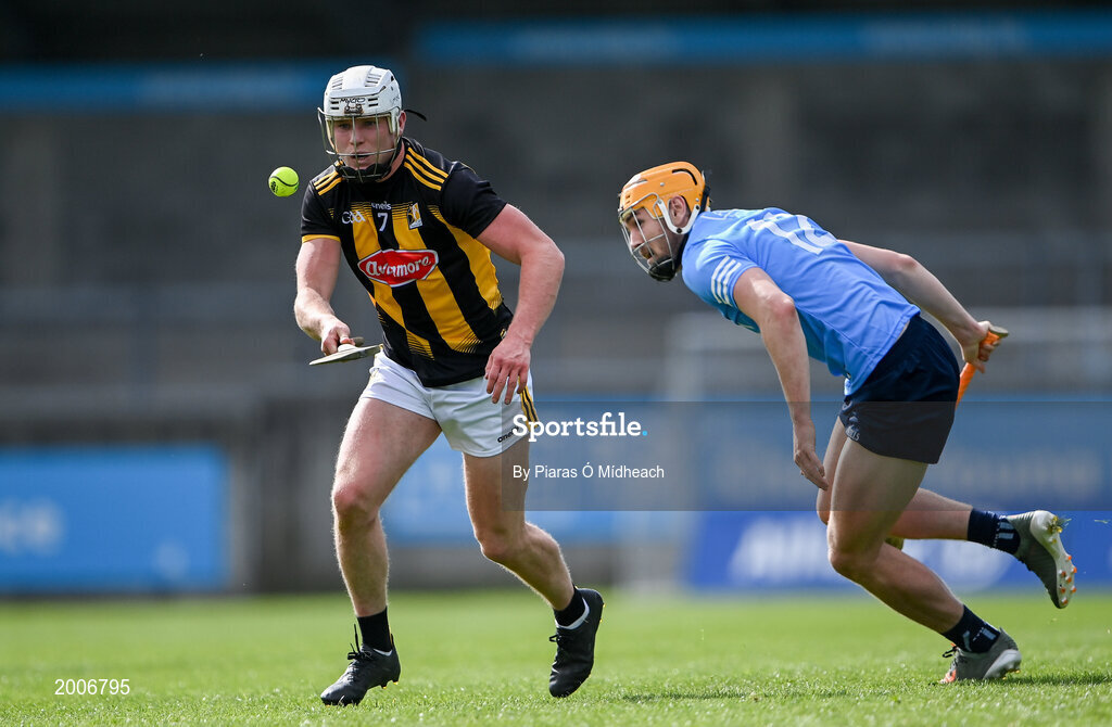 8 May 2021; Conor Browne of Kilkenny in action against Ronan Hayes of Dublin during the Allianz Hurling League Division 1 Group B Round 1 match between Dublin and Kilkenny at Parnell Park in Dublin. Photo by Piaras Ó Mídheach/Sportsfile
