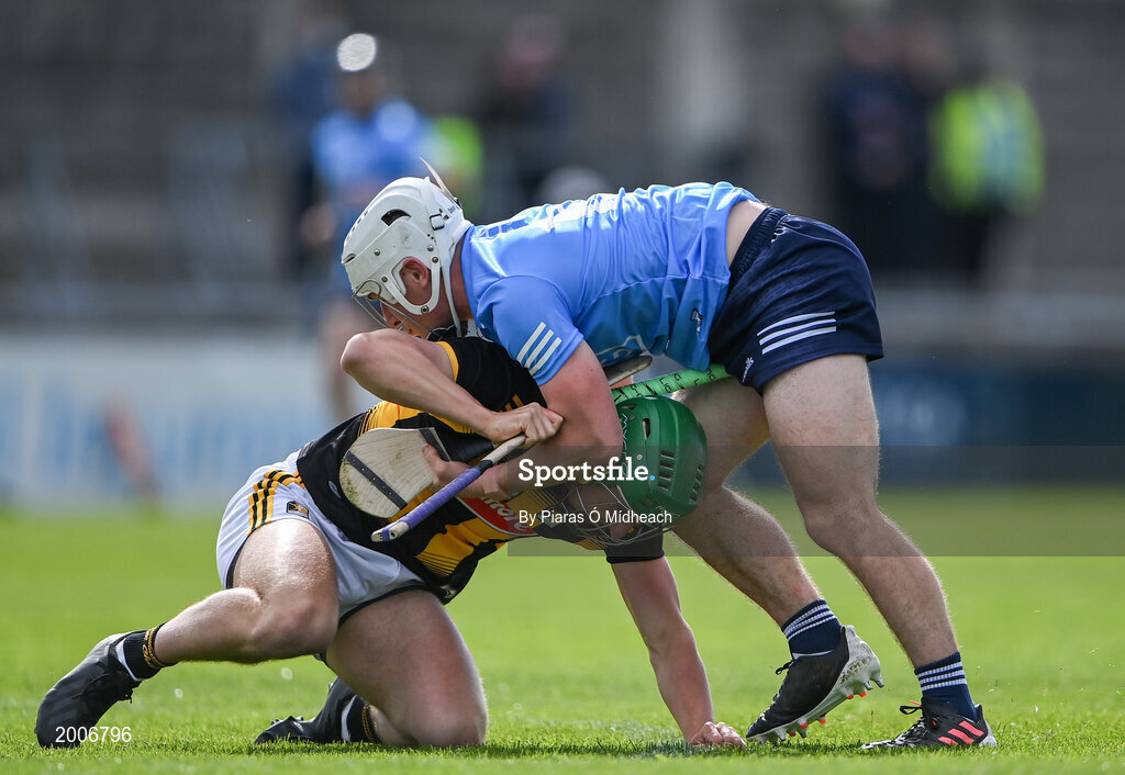 8 May 2021; Alan Murphy of Kilkenny and Andrew Dunphy of Dublin tussle off the ball during the Allianz Hurling League Division 1 Group B Round 1 match between Dublin and Kilkenny at Parnell Park in Dublin. Photo by Piaras Ó Mídheach/Sportsfile