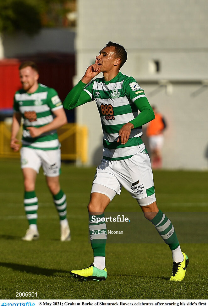 8 May 2021; Graham Burke of Shamrock Rovers celebrates after scoring his side's first goal during the SSE Airtricity League Premier Division match between St Patrick's Athletic and Shamrock Rovers at Richmond Park in Dublin. Photo by Eóin Noonan/Sportsfile