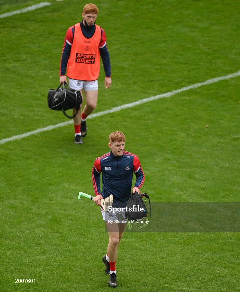 9 May 2021; Cork goalkeepers, and brothers, Patrick Collins, below, and Gerard Collins, make their way off the pitch at half-time of the Allianz Hurling League Division 1 Group A Round 1 match between Cork and Waterford at Páirc Ui Chaoimh in Cork. Photo by Stephen McCarthy/Sportsfile