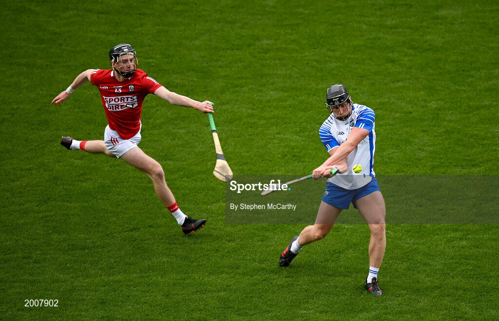 9 May 2021; Iarlaith Daly of Waterford and Jack O'Connor of Cork during the Allianz Hurling League Division 1 Group A Round 1 match between Cork and Waterford at Páirc Ui Chaoimh in Cork. Photo by Stephen McCarthy/Sportsfile