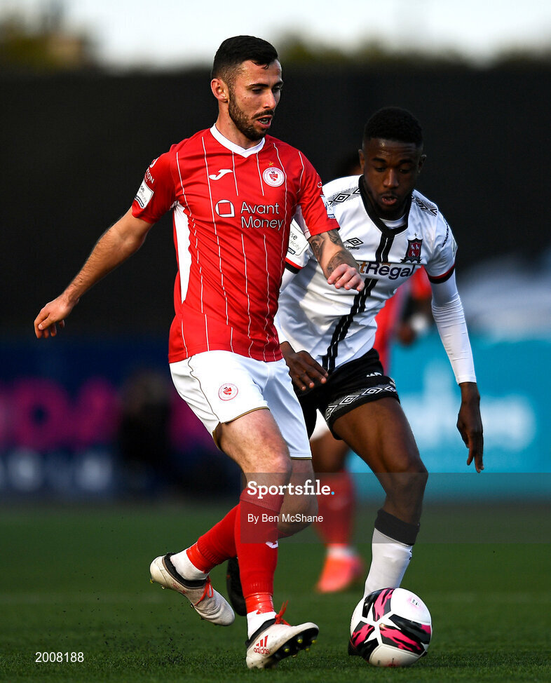 7 May 2021; Robbie McCourt of Sligo Rovers and Junior Ogedi-Uzokwe of Dundalk during the SSE Airtricity League Premier Division match between Dundalk and Sligo Rovers at Oriel Park in Dundalk, Louth. Photo by Ben McShane/Sportsfile