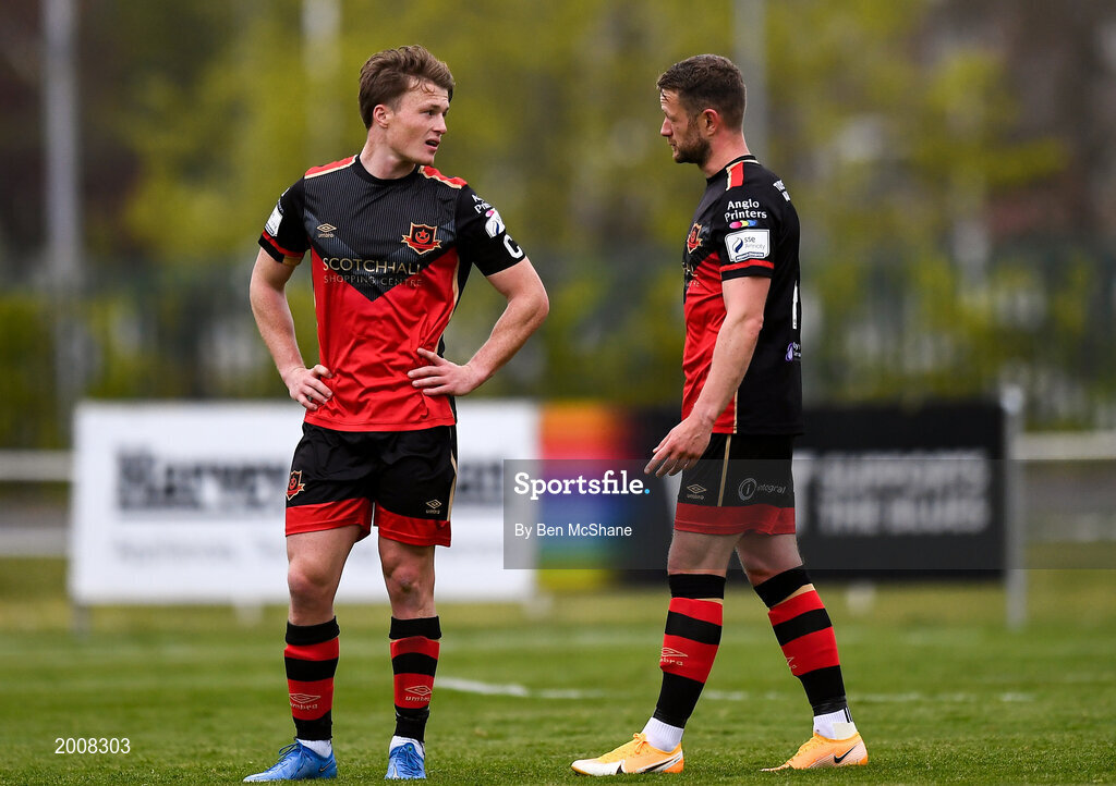 8 May 2021; Daniel O'Reilly, left, and Dane Massey of Drogheda United during the SSE Airtricity League Premier Division match between Waterford and Drogheda United at RSC in Waterford. Photo by Ben McShane/Sportsfile