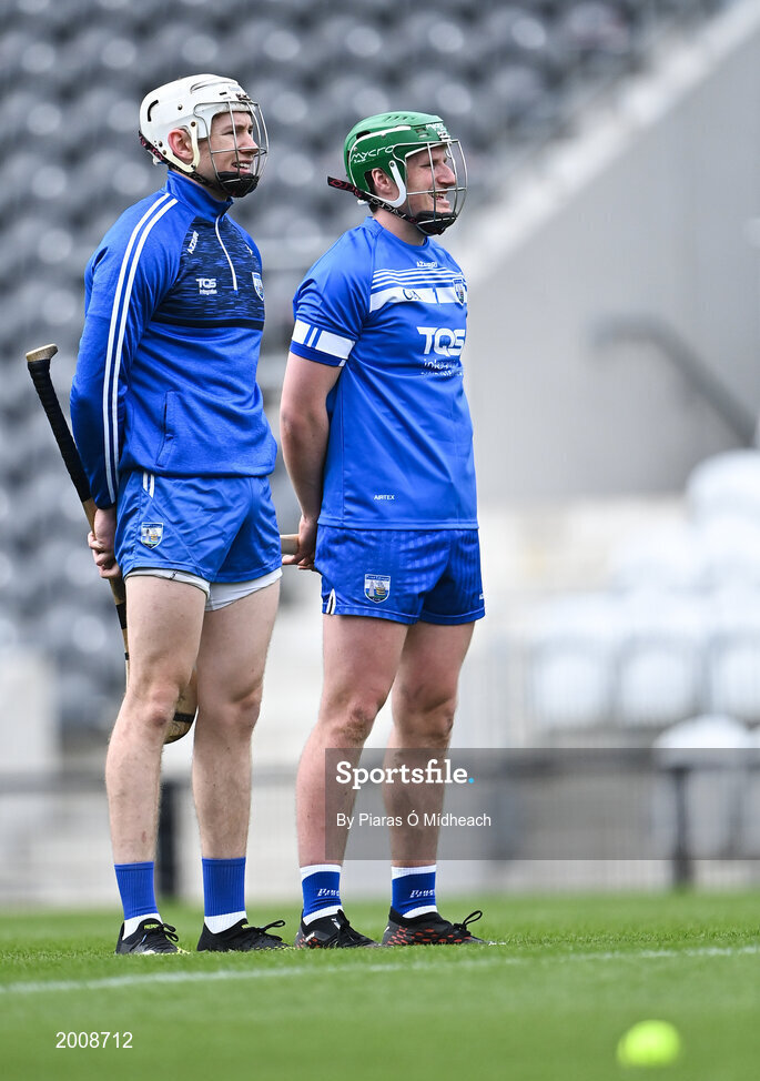 9 May 2021; Waterford goalkeepers Billy Nolan, right, and Shaun O'Brien stand for Amhrán na bhFiann before the Allianz Hurling League Division 1 Group A Round 1 match between Cork and Waterford at Páirc Ui Chaoimh in Cork. Photo by Piaras Ó Mídheach/Sportsfile