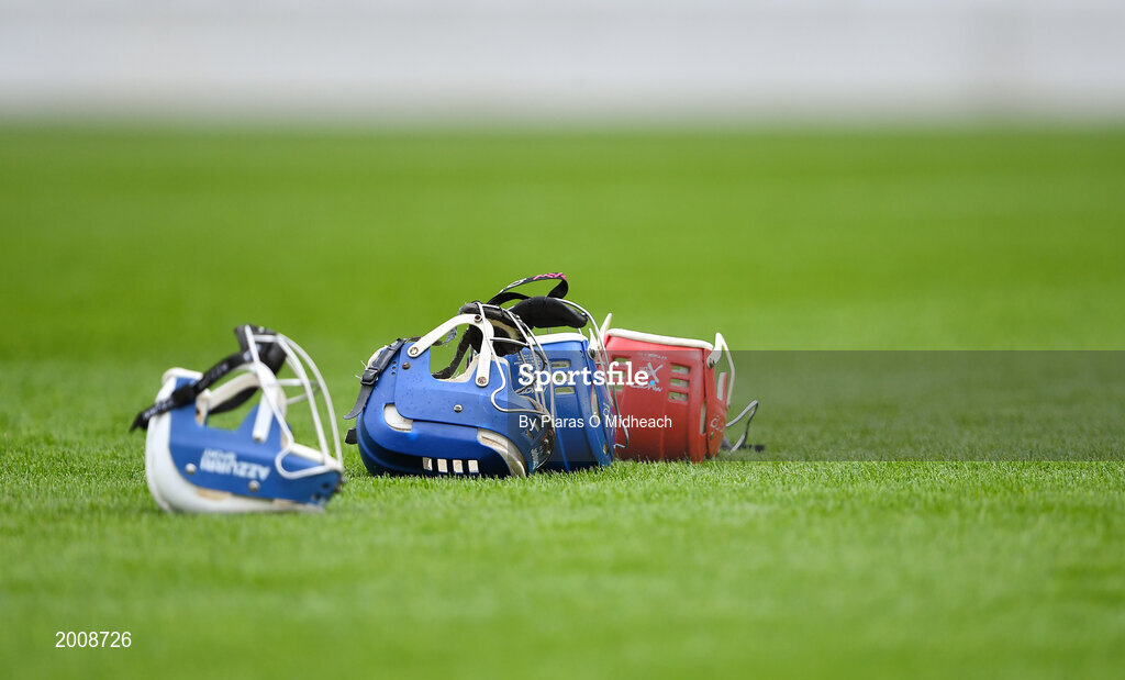 9 May 2021; A general view of helmets on the pitch before the Allianz Hurling League Division 1 Group A Round 1 match between Cork and Waterford at Páirc Ui Chaoimh in Cork. Photo by Piaras Ó Mídheach/Sportsfile