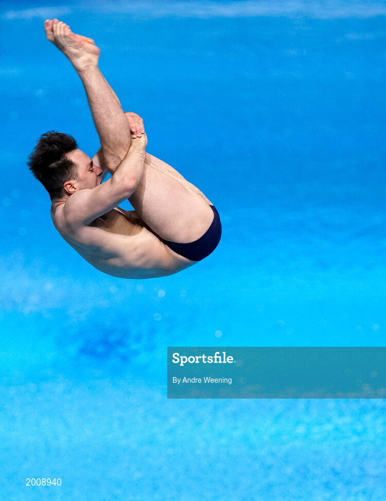 14 May 2021; Oliver Dingley of Ireland competing in the 3m springboard dive event during day 5 of the LEN European Aquatics Championships at the Duna Arena in Budapest, Hungary. Photo by Andre Weening/Sportsfile