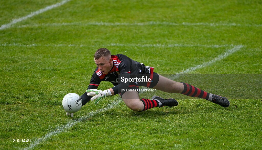 15 May 2021; Down goalkeeper Rory Burns makes a save during the Allianz Football League Division 2 North Round 1 match between Mayo and Down at Elverys MacHale Park in Castlebar, Mayo. Photo by Piaras Ó Mídheach/Sportsfile