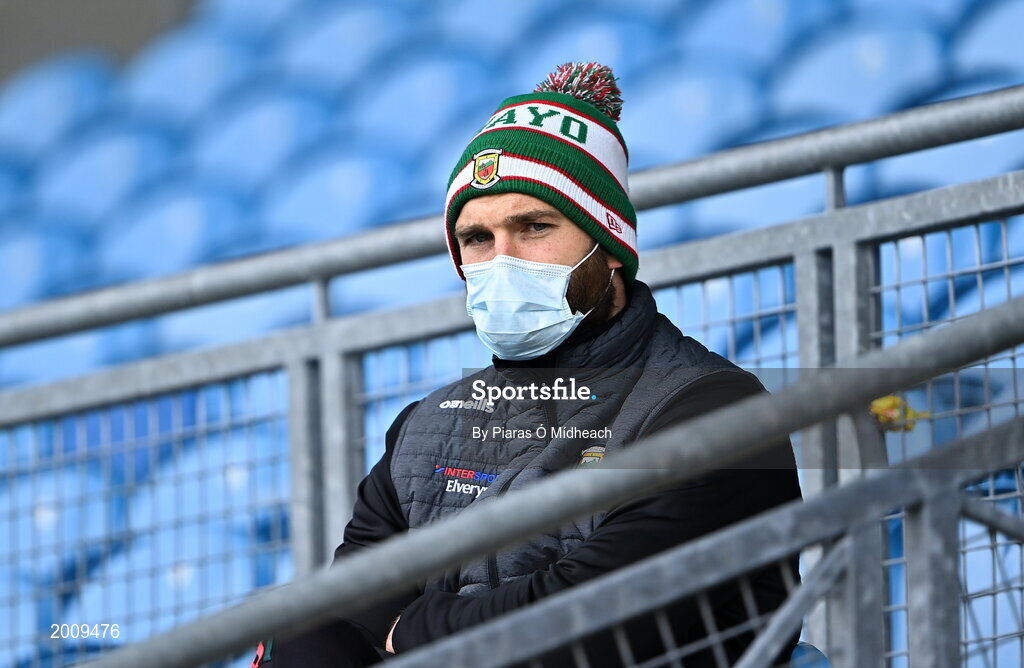 15 May 2021; Injured Mayo footballer Aidan O'Shea in the stand before the Allianz Football League Division 2 North Round 1 match between Mayo and Down at Elverys MacHale Park in Castlebar, Mayo. Photo by Piaras Ó Mídheach/Sportsfile