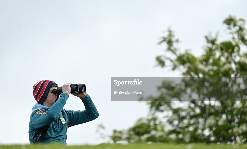 15 May 2021; Shane Stack, from Tarbert in Kerry, looks on with a pair of binoculars during the Allianz Football League Division 1 South Round 1 match between Kerry and Galway at Austin Stack Park in Tralee, Kerry. Photo by Brendan Moran/Sportsfile