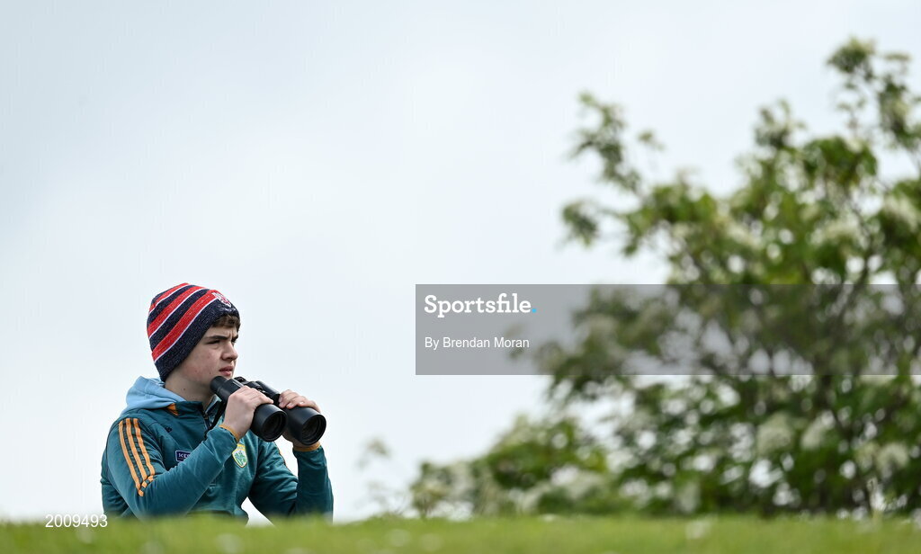 15 May 2021; Shane Stack, from Tarbert in Kerry, looks on with a pair of binoculars during the Allianz Football League Division 1 South Round 1 match between Kerry and Galway at Austin Stack Park in Tralee, Kerry. Photo by Brendan Moran/Sportsfile
