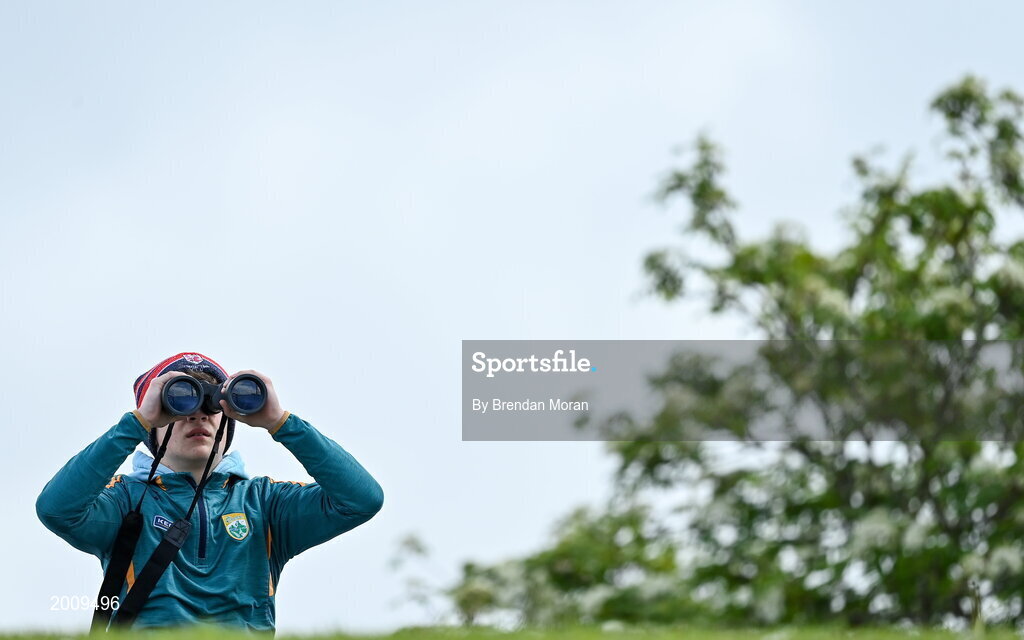 15 May 2021; Shane Stack, from Tarbert in Kerry, looks on with a pair of binoculars during the Allianz Football League Division 1 South Round 1 match between Kerry and Galway at Austin Stack Park in Tralee, Kerry. Photo by Brendan Moran/Sportsfile