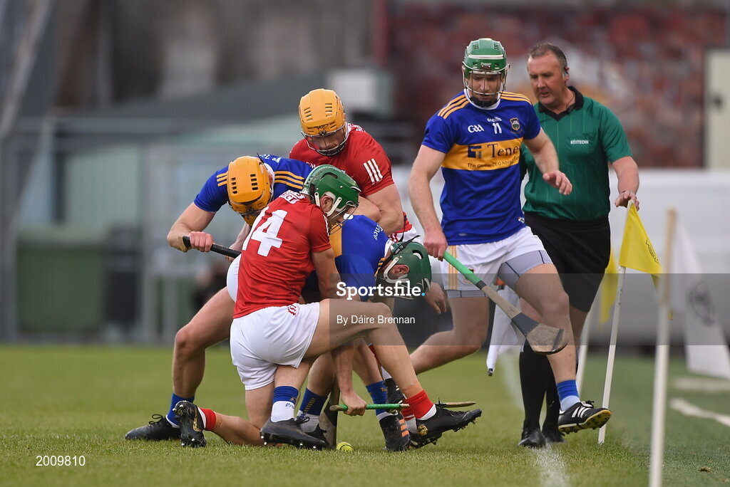 15 May 2021; Cathal Barrett of Tipperary in action against Alan Cadogan of Cork during the Allianz Hurling League Division 1 Group A Round 2 match between Tipperary and Cork at Semple Stadium in Thurles, Tipperary. Photo by Daire Brennan/Sportsfile
