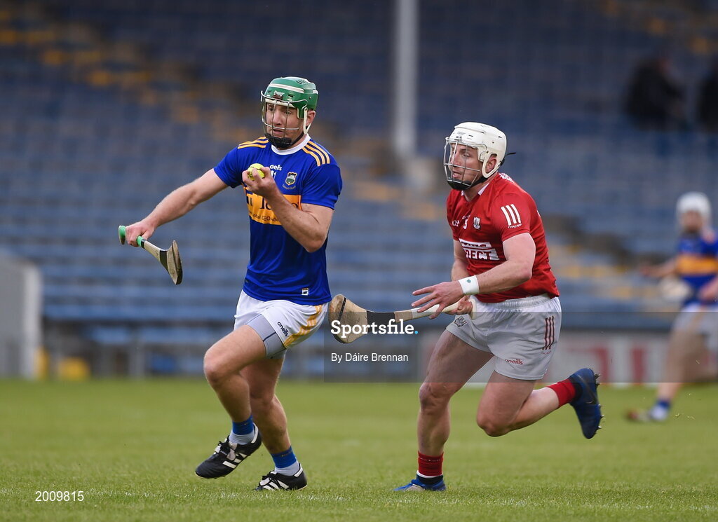 15 May 2021; Noel McGrath of Tipperary in action against Patrick Horgan of Cork during the Allianz Hurling League Division 1 Group A Round 2 match between Tipperary and Cork at Semple Stadium in Thurles, Tipperary. Photo by Daire Brennan/Sportsfile