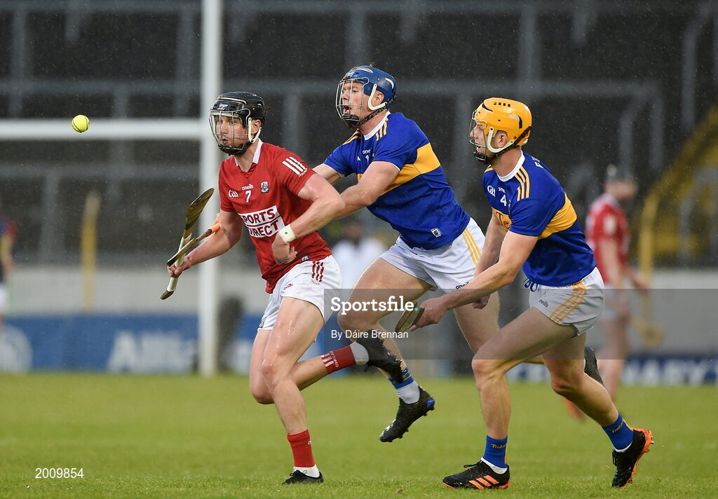 15 May 2021; Niall Cashman of Cork in action against Jason Forde, left, and Barry Heffernan of Tipperary during the Allianz Hurling League Division 1 Group A Round 2 match between Tipperary and Cork at Semple Stadium in Thurles, Tipperary. Photo by Daire Brennan/Sportsfile