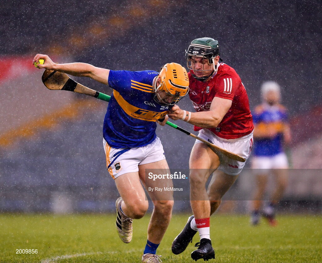 15 May 2021; Jake Morris of Tipperary in action against Mark Coleman of Cork during the Allianz Hurling League Division 1 Group A Round 2 match between Tipperary and Cork at Semple Stadium in Thurles, Tipperary. Photo by Ray McManus/Sportsfile