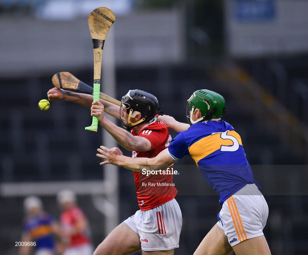 15 May 2021; Jack O'Connor of Cork in action against Brian McGrath of Tipperary during the Allianz Hurling League Division 1 Group A Round 2 match between Tipperary and Cork at Semple Stadium in Thurles, Tipperary. Photo by Ray McManus/Sportsfile