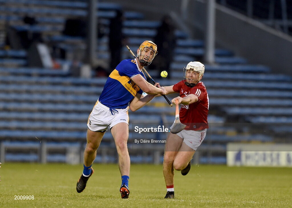 15 May 2021; Barry Heffernan of Tipperary in action against Luke Meade of Cork during the Allianz Hurling League Division 1 Group A Round 2 match between Tipperary and Cork at Semple Stadium in Thurles, Tipperary. Photo by Daire Brennan/Sportsfile