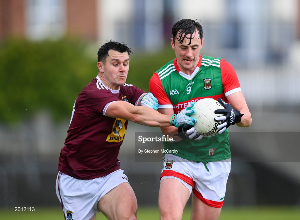 22 May 2021; Diarmuid O'Connor of Mayo in action against David Lynch of Westmeath during the Allianz Football League Division 2 North Round 2 match between Westmeath and Mayo at TEG Cusack Park in Mullingar, Westmeath. Photo by Stephen McCarthy/Sportsfile