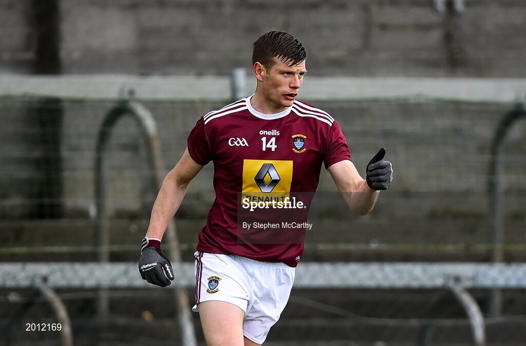22 May 2021; John Heslin of Westmeath celebrates after scoring his side's second goal, a penalty, during the Allianz Football League Division 2 North Round 2 match between Westmeath and Mayo at TEG Cusack Park in Mullingar, Westmeath. Photo by Stephen McCarthy/Sportsfile