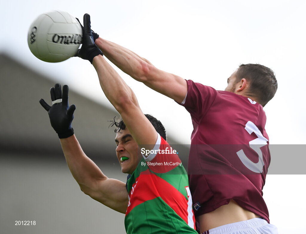 22 May 2021; Tommy Conroy of Mayo in action against Kevin Maguire of Westmeath during the Allianz Football League Division 2 North Round 2 match between Westmeath and Mayo at TEG Cusack Park in Mullingar, Westmeath. Photo by Stephen McCarthy/Sportsfile