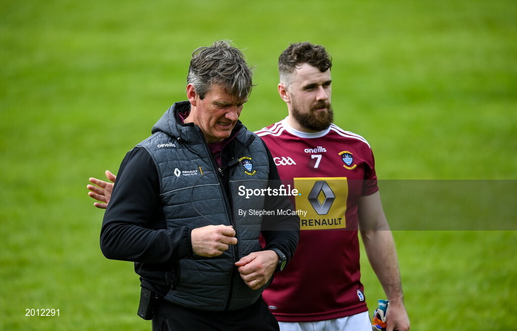 22 May 2021; Westmeath manager Jack Cooney and Jamie Gonoud following the Allianz Football League Division 2 North Round 2 match between Westmeath and Mayo at TEG Cusack Park in Mullingar, Westmeath. Photo by Stephen McCarthy/Sportsfile