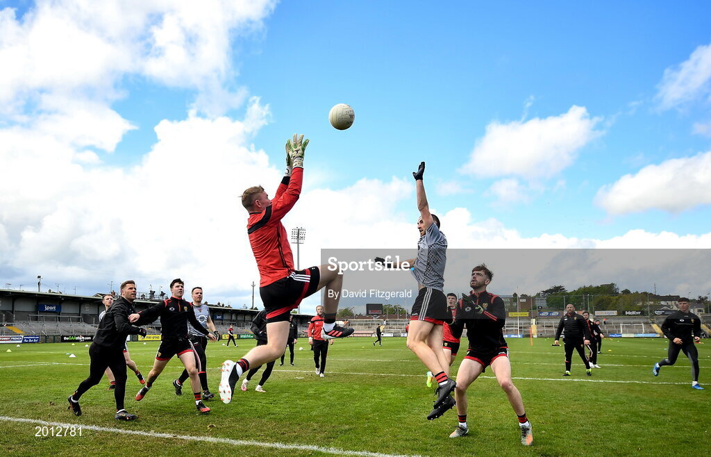 23 May 2021; Down players warm up before the Allianz Football League Division 2 North Round 2 match between Down and Meath at Athletic Grounds in Armagh. Photo by David Fitzgerald/Sportsfile