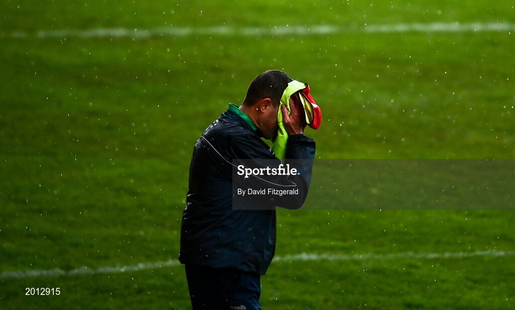 23 May 2021; Meath manager Andy McEntee drys his face with a bib during the Allianz Football League Division 2 North Round 2 match between Down and Meath at Athletic Grounds in Armagh. Photo by David Fitzgerald/Sportsfile