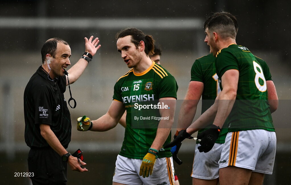 23 May 2021; Meath players remonstrate with referee Niall Cullen during the Allianz Football League Division 2 North Round 2 match between Down and Meath at Athletic Grounds in Armagh. Photo by David Fitzgerald/Sportsfile