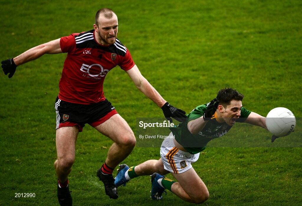 23 May 2021; James Conlon of Meath in action against Patrick Murdock of Down during the Allianz Football League Division 2 North Round 2 match between Down and Meath at Athletic Grounds in Armagh. Photo by David Fitzgerald/Sportsfile