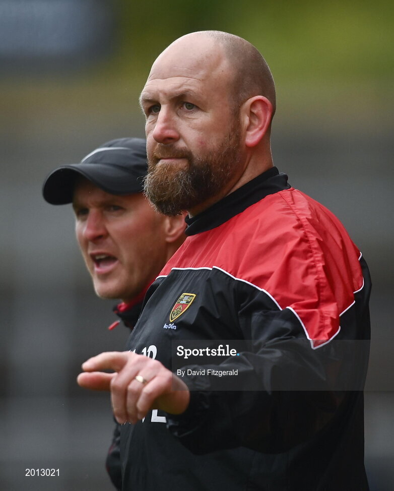 23 May 2021; Down selector Stephen Beattie, right, and manager Paddy Tally during the Allianz Football League Division 2 North Round 2 match between Down and Meath at Athletic Grounds in Armagh. Photo by David Fitzgerald/Sportsfile