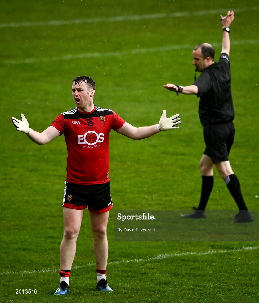 23 May 2021; Paul Devlin of Down reacts to a decision during the Allianz Football League Division 2 North Round 2 match between Down and Meath at Athletic Grounds in Armagh. Photo by David Fitzgerald/Sportsfile
