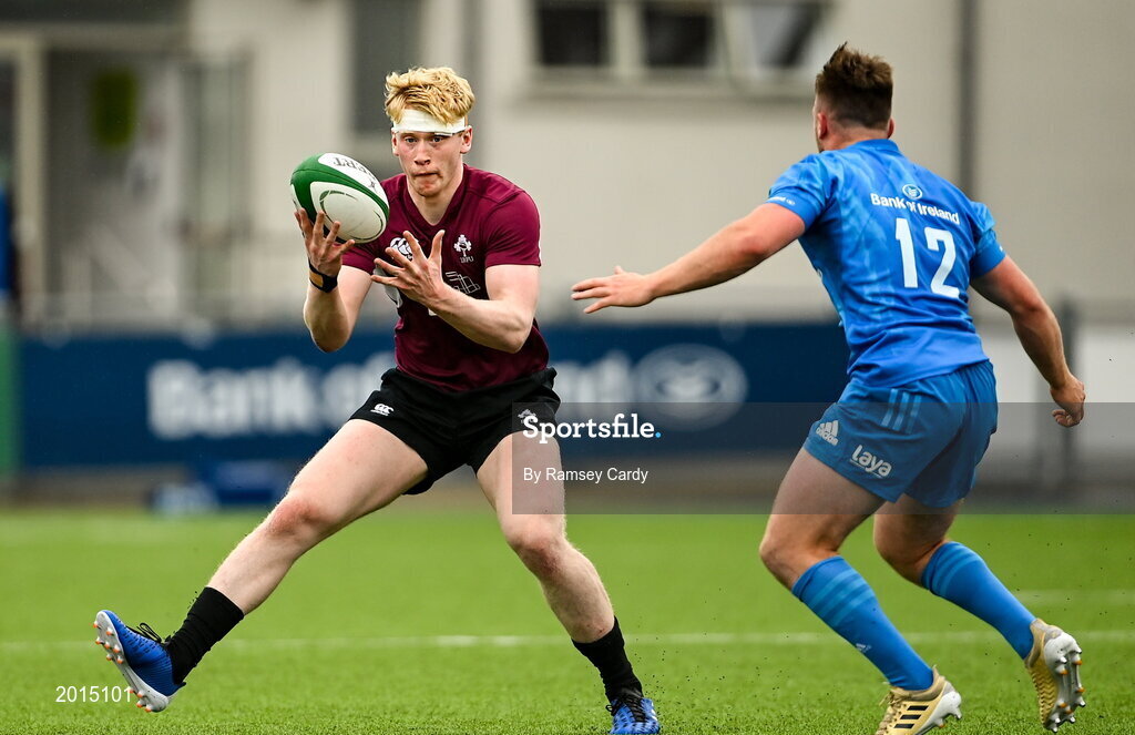 28 May 2021; Jamie Osborne of Ireland U20 in action against David Hawkshaw of Leinster A during the match between Ireland U20 and Leinster A at Energia Park in Dublin. Photo by Ramsey Cardy/Sportsfile