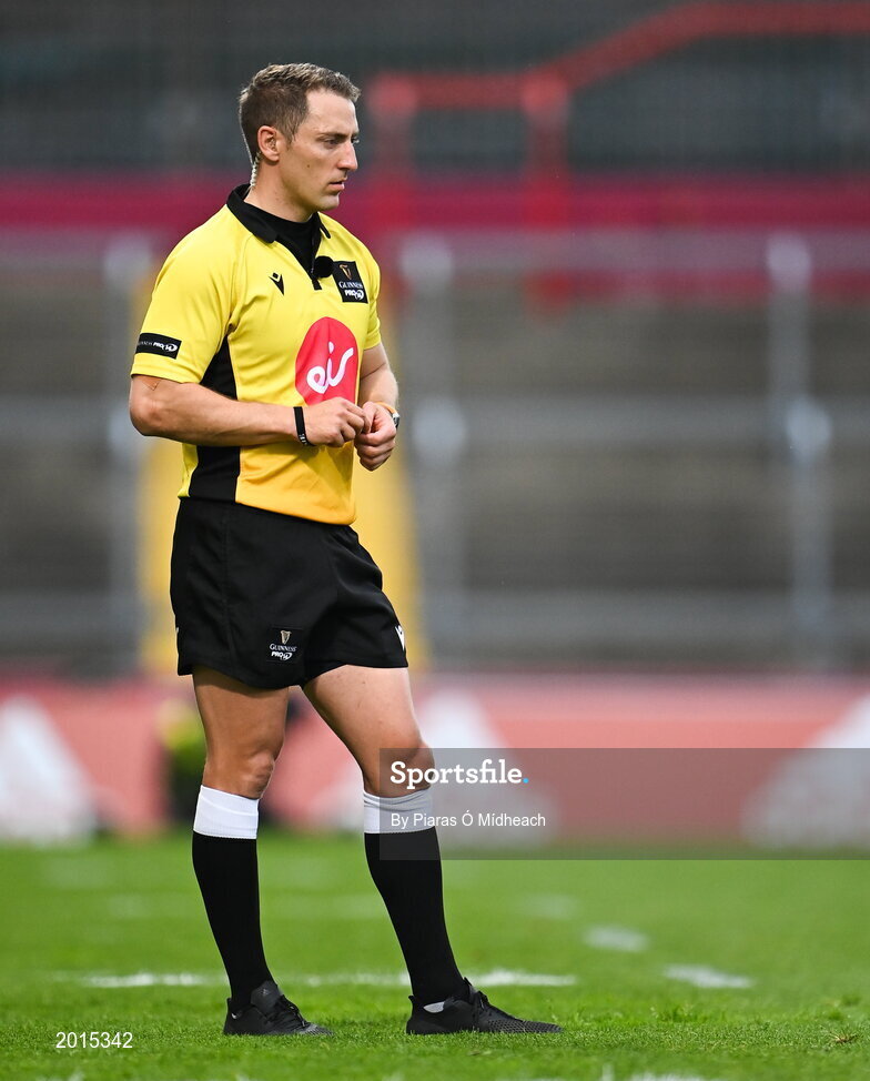 28 May 2021; Referee Andrew Brace during the Guinness PRO14 Rainbow Cup match between Munster and Cardiff Blues at Thomond Park in Limerick. Photo by Piaras Ó Mídheach/Sportsfile