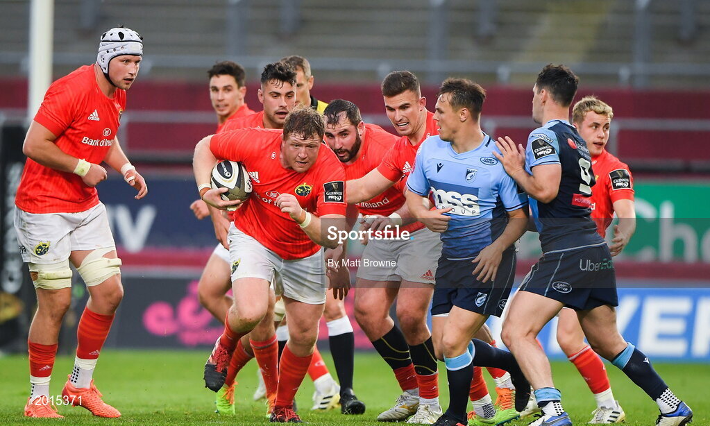 28 May 2021; Stephen Archer of Munster in action against Cardiff Blues during the Guinness PRO14 Rainbow Cup match between Munster and Cardiff Blues at Thomond Park in Limerick. Photo by Matt Browne/Sportsfile