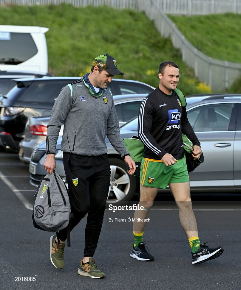 29 May 2021; Donegal players Michael Murphy, left, and Neil McGee make their way to the stadium before the Allianz Football League Division 1 North Round 3 match between Armagh and Donegal at the Athletic Grounds in Armagh. Photo by Piaras Ó Mídheach/Sportsfile