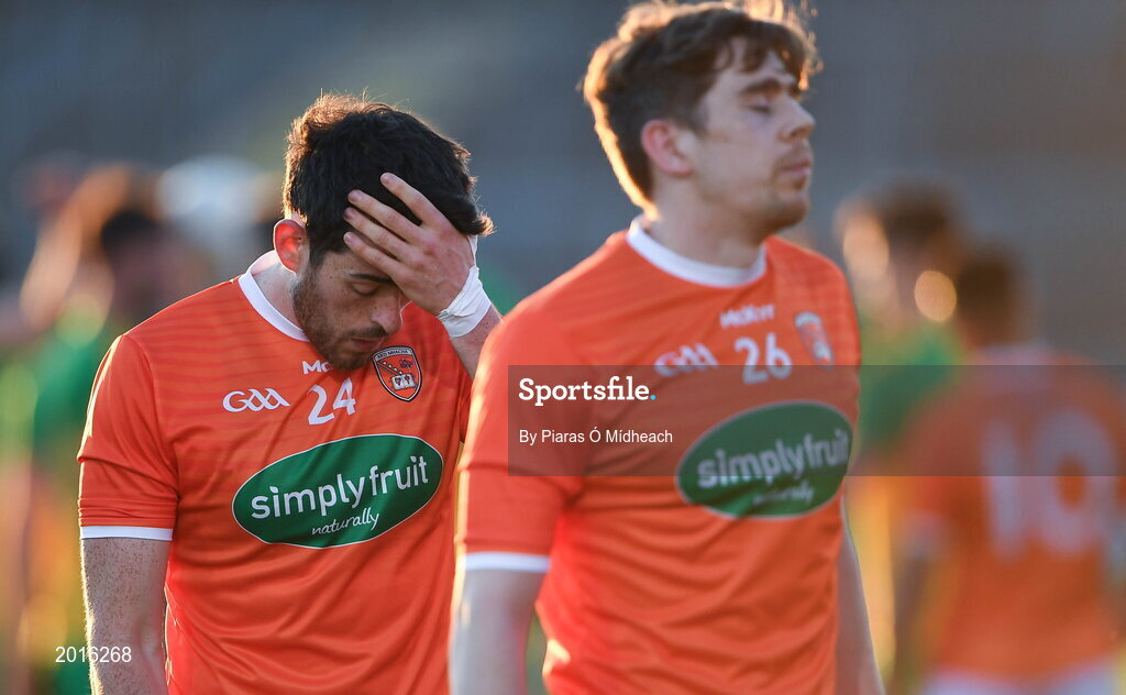29 May 2021; Jack Grugan of Armagh reacts after the drawn Allianz Football League Division 1 North Round 3 match between Armagh and Donegal at the Athletic Grounds in Armagh. Photo by Piaras Ó Mídheach/Sportsfile