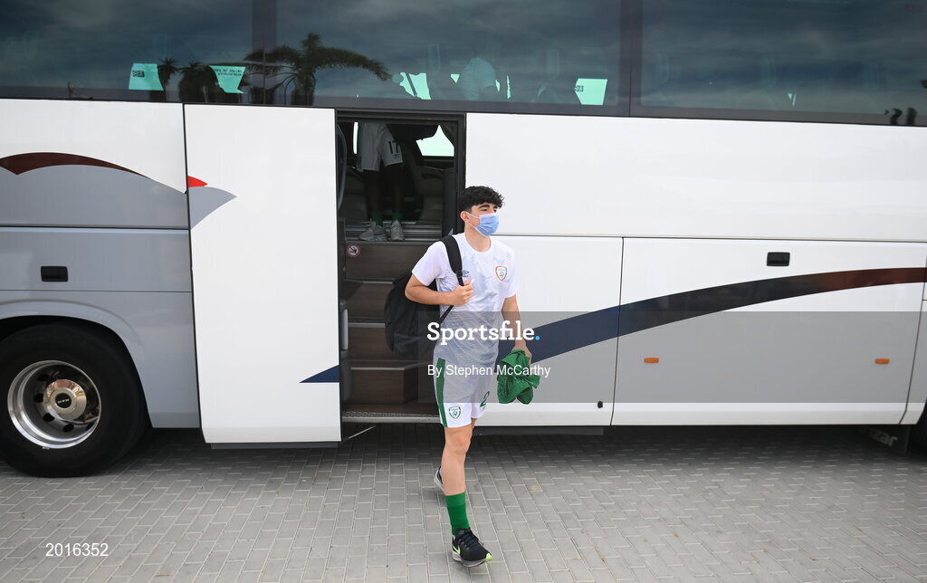 30 May 2021; Anselmo Garcia MacNulty of Republic of Ireland arrives before the U21 international friendly match between Switzerland and Republic of Ireland at Dama de Noche Football Centre in Marbella, Spain. Photo by Stephen McCarthy/Sportsfile
