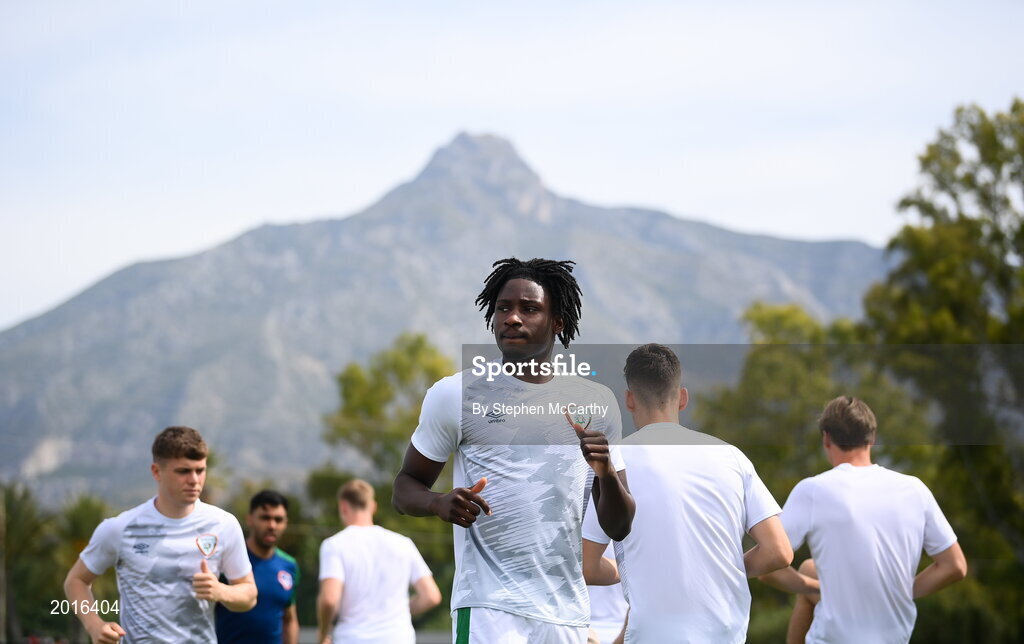 30 May 2021; Joshua Kayode of Republic of Ireland warms up before the U21 international friendly match between Switzerland and Republic of Ireland at Dama de Noche Football Centre in Marbella, Spain. Photo by Stephen McCarthy/Sportsfile