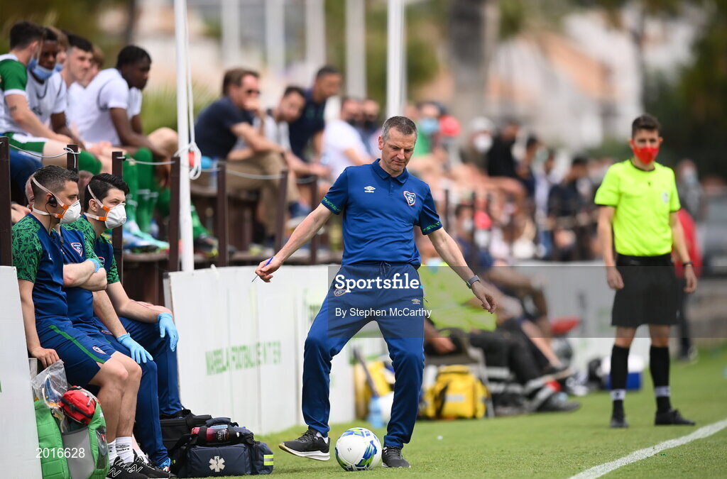 30 May 2021; Republic of Ireland manager Jim Crawford during the U21 international friendly match between Switzerland and Republic of Ireland at Dama de Noche Football Centre in Marbella, Spain. Photo by Stephen McCarthy/Sportsfile