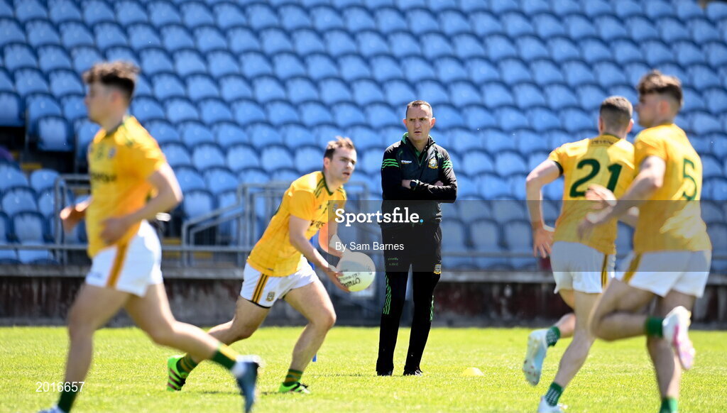 30 May 2021; Meath manager Andy McEntee watches his players warm up before the Allianz Football League Division 2 North Round 3 match between Mayo and Meath at Elverys MacHale Park in Castlebar, Mayo. Photo by Sam Barnes/Sportsfile