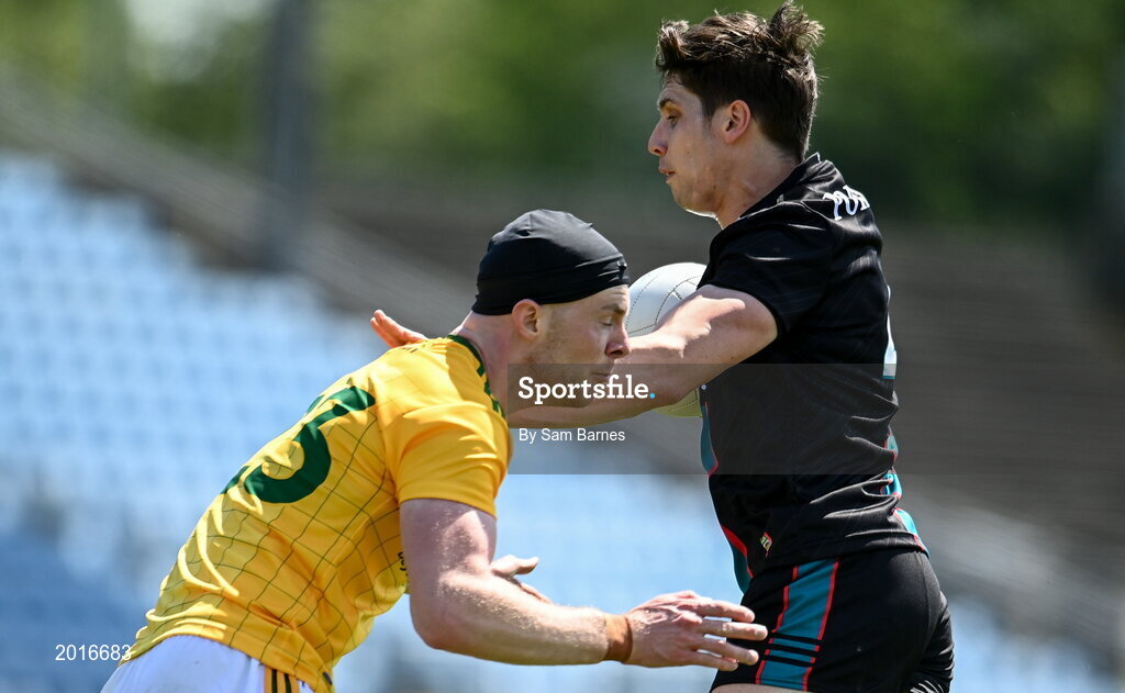 30 May 2021; Lee Keegan of Mayo in action against Bryan McMahon of Meath during the Allianz Football League Division 2 North Round 3 match between Mayo and Meath at Elverys MacHale Park in Castlebar, Mayo. Photo by Sam Barnes/Sportsfile