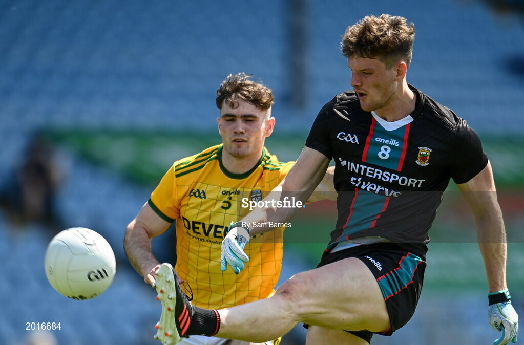 30 May 2021; Matthew Ruane of Mayo in action against Cathal Hickey of Meath during the Allianz Football League Division 2 North Round 3 match between Mayo and Meath at Elverys MacHale Park in Castlebar, Mayo. Photo by Sam Barnes/Sportsfile