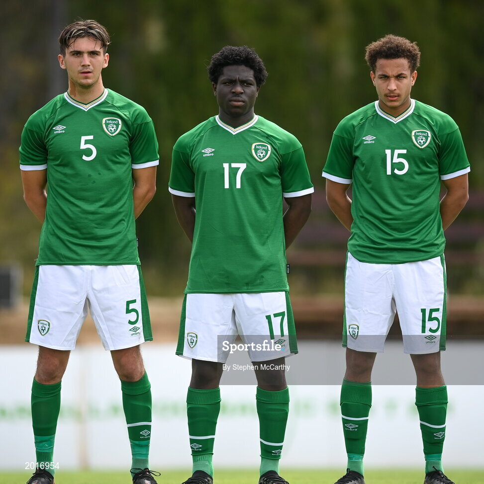 30 May 2021; Republic of Ireland players, from left, Oisin McEntee, Festy Ebosele and Lewis Richards before the U21 international friendly match between Switzerland and Republic of Ireland at Dama de Noche Football Centre in Marbella, Spain. Photo by Stephen McCarthy/Sportsfile