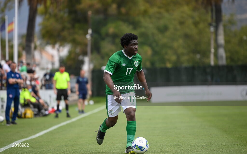30 May 2021; Festy Ebosele of Republic of Ireland during the U21 international friendly match between Switzerland and Republic of Ireland at Dama de Noche Football Centre in Marbella, Spain. Photo by Stephen McCarthy/Sportsfile