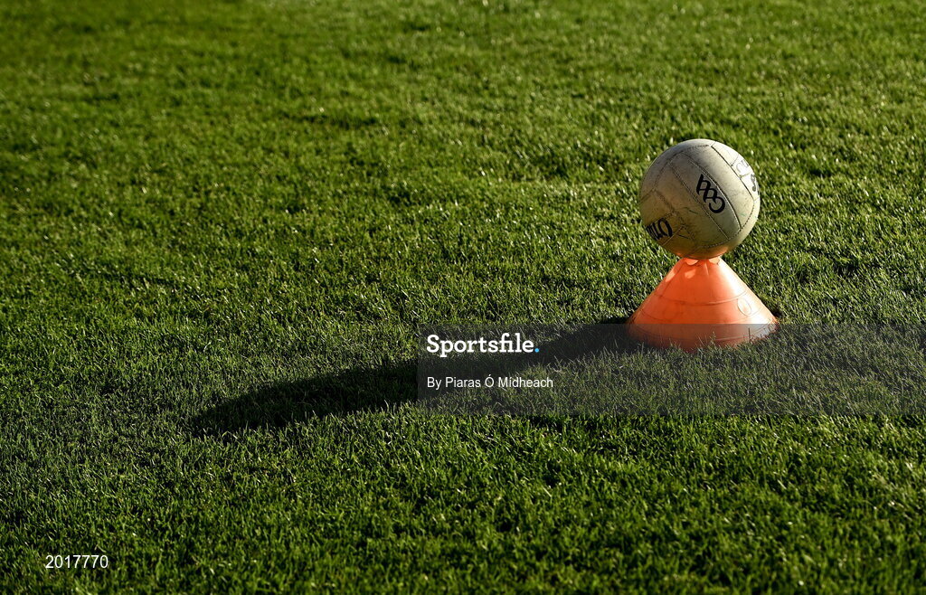 29 May 2021; A general view of a football on the pitch during the Armagh warm-up before the Allianz Football League Division 1 North Round 3 match between Armagh and Donegal at the Athletic Grounds in Armagh. Photo by Piaras Ó Mídheach/Sportsfile
