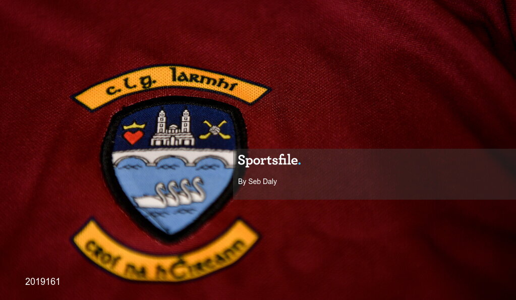 3 June 2021; A detailed view of the Westmeath jersey during a Westmeath football squad portrait session at The Downs GAA Club in Mullingar, Westmeath. Photo by Seb Daly/Sportsfile