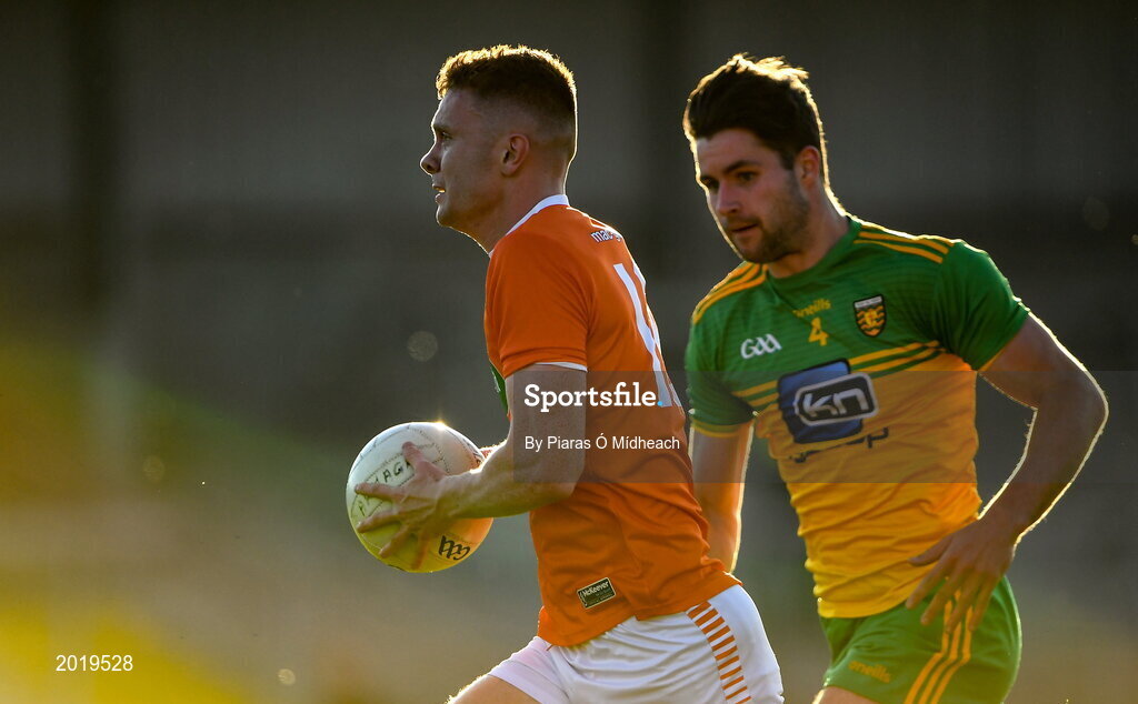 29 May 2021; Ross McQuillan of Armagh in action against Brendan McCole of Donegal during the Allianz Football League Division 1 North Round 3 match between Armagh and Donegal at the Athletic Grounds in Armagh. Photo by Piaras Ó Mídheach/Sportsfile