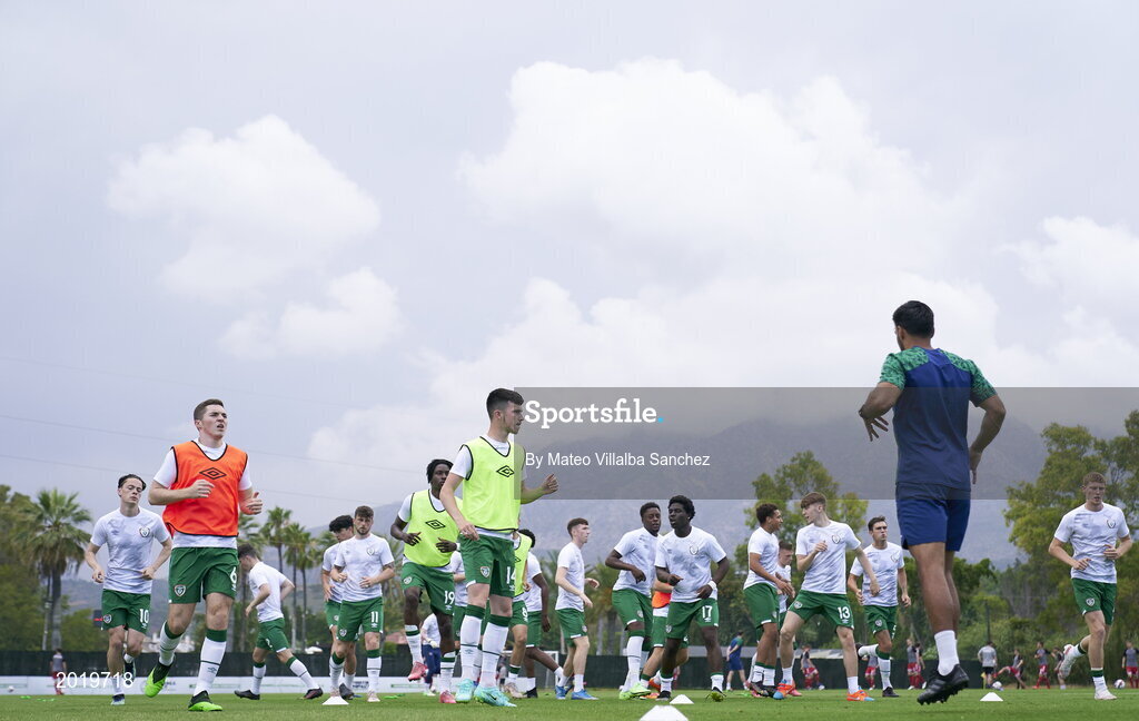 5 June 2021; Republic of Ireland players warm up before the U21 international friendly match between Republic of Ireland and Denmark at Dama de Noche Football Centre in Marbella, Spain. Photo by Mateo Villalba Sanchez/Sportsfile