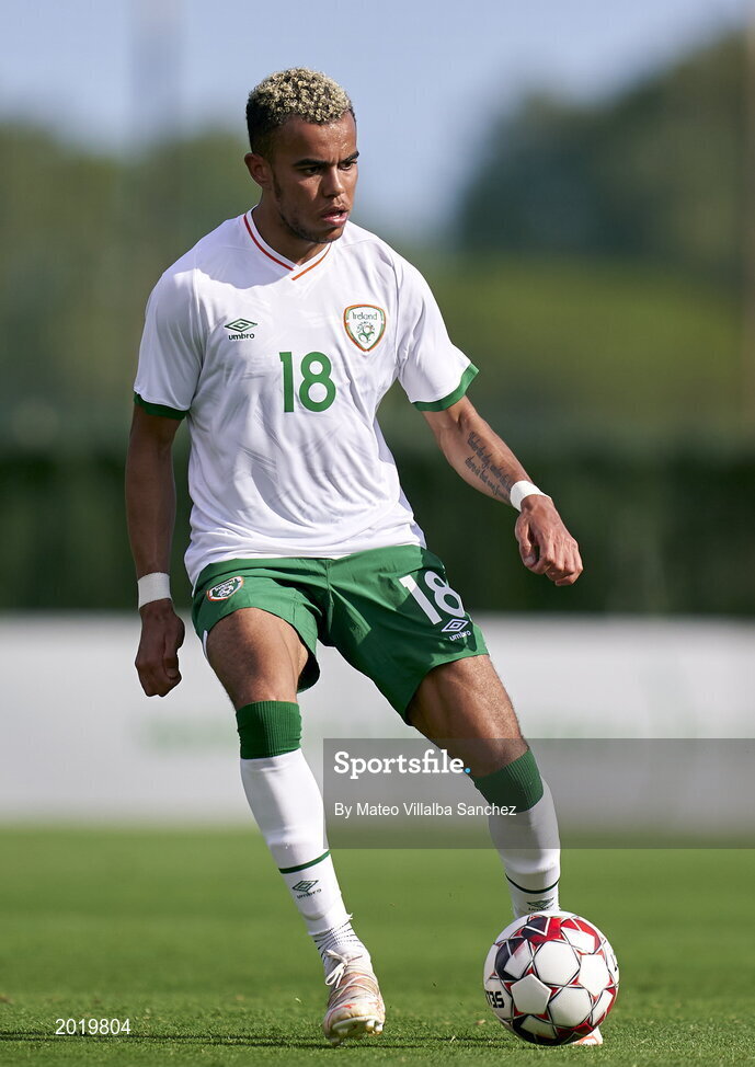 5 June 2021; Tyreik Wright of Republic of Ireland during the U21 international friendly match between Republic of Ireland and Denmark at Dama de Noche Football Centre in Marbella, Spain. Photo by Mateo Villalba Sanchez/Sportsfile