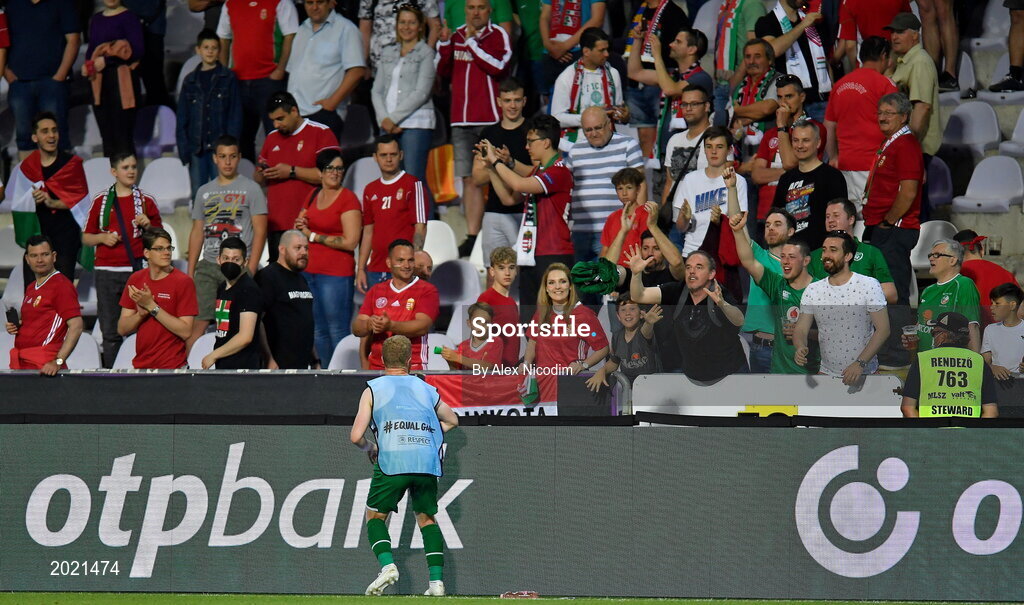 8 June 2021; Daryl Horgan of Republic of Ireland throws his jersey to supporters following the international friendly match between Hungary and Republic of Ireland at Szusza Ferenc Stadion in Budapest, Hungary. Photo by Alex Nicodim/Sportsfile